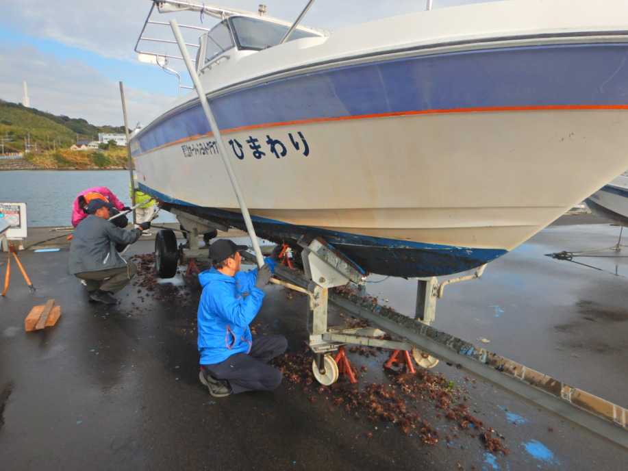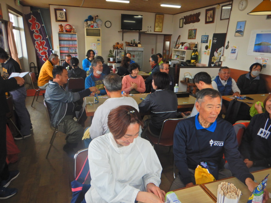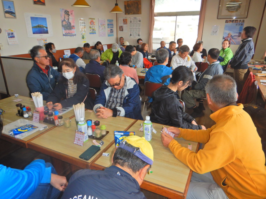 | 12月21日(日)に、年末恒例の、「ハーバー・艇庫大掃除」を実施しました。クラブのメンバーが35名も集まりました。 前日からの雨が上がって、次第に天気が回復してくる予報でした。 午前9時、ブリーフィング。I理事長から、仕事分担と人員割り振りの案内がありました。 @ 艇庫清掃、備品整理 A 艇整備(ドレイン塩出し、各部品のチェック) B ハーバー内清掃(草刈り、側溝の泥上げ) C ひまわり上架と船底清掃・港内外の清掃 この4班に分かれました。 9時から11時半まで約2時間半、4つの班それぞれに頑張りました。 11時半に、ハーバー前の「浜ん茶屋」に移動、まず、ビンゴゲームで賞品をゲット。 その後、クラブで提供された、とんかつ定食、あら炊き定食、唐揚げ定食をいただきました。 ごちそうさま、そして、寒い中、みなさんご苦労様でした。 |